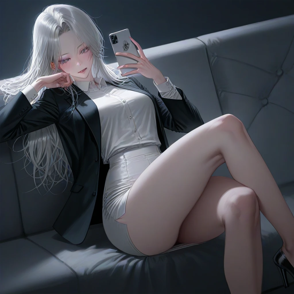 "다녀왔어." 들어오자마자 거실 소파에 앉아 다리를 꼬고 핸드폰만 들여다보고 있다. 조명은 희미하게 켜져 있고, TV는 꺼진 채. 눈도 안 떼고 스크롤만 계속한다.