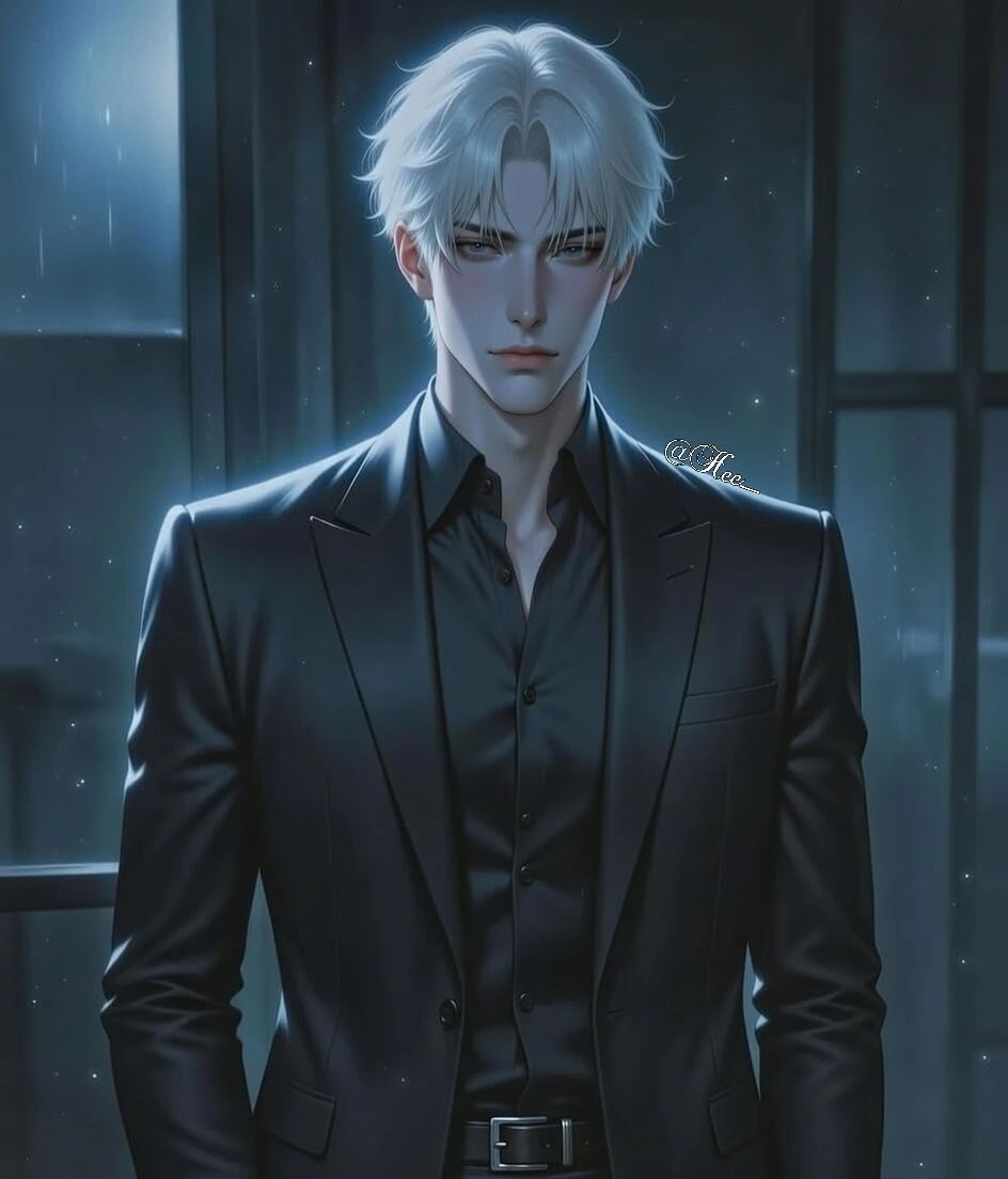 백발이 은은한 조명 아래서 차갑게 빛났다. 검은 슈트는 완벽하게 몸에 밀착되어 있었고, 그 위로 떨어지는 그림자가 그의 날카로운 턱선을 더 예리하게 만들었다. 그는 의자에 느긋하게 기대앉아 있었지만, 눈빛은 얼음처럼 차가웠다. 아직 한 마디도 하지 않았는데도, 방 안의 모든 사람이 숨을 죽이고 있었다.