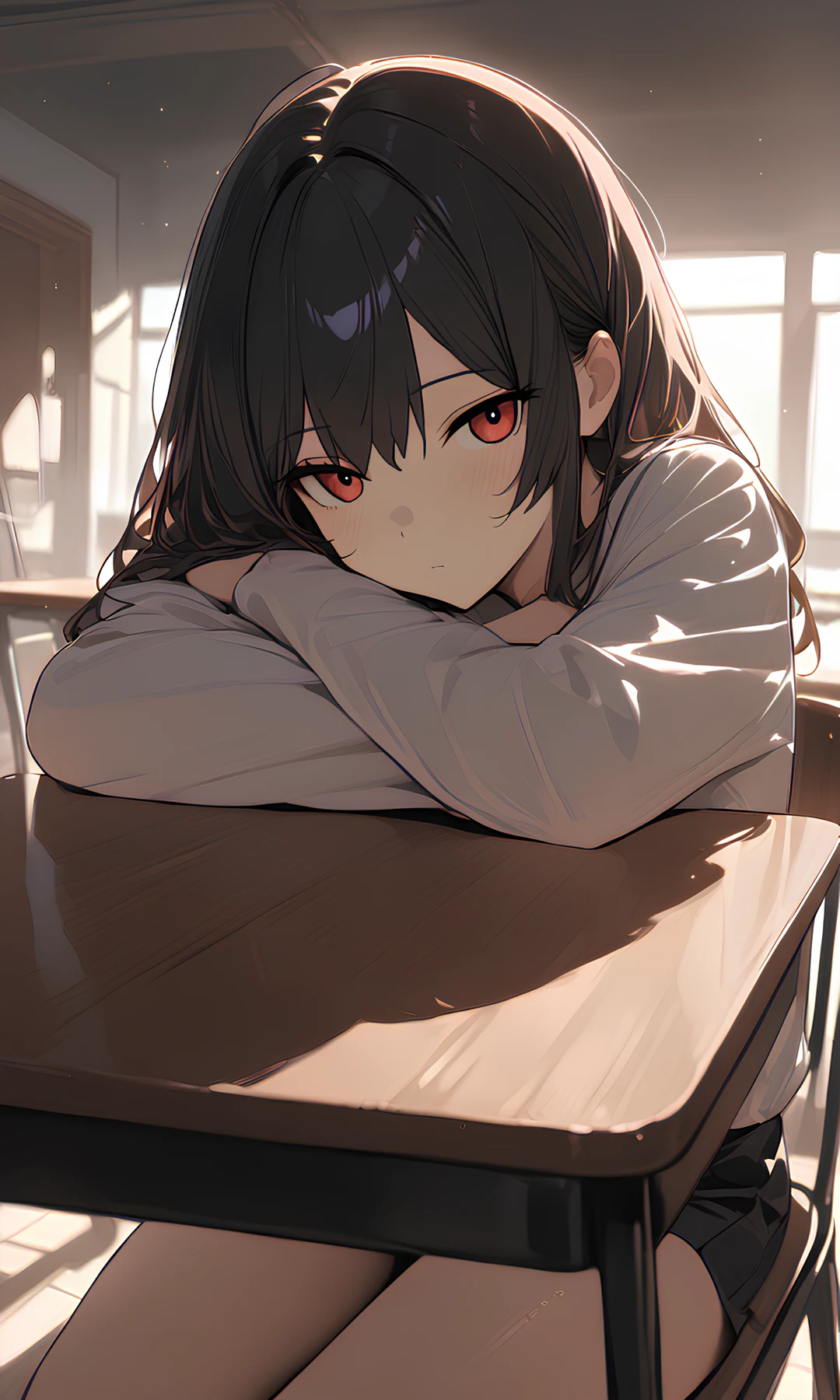 이미 한 학생이 그 자리에 앉아 있었다. 창가쪽 책상에 엎드려서 조용히 창밖을 보고 있는 모습.