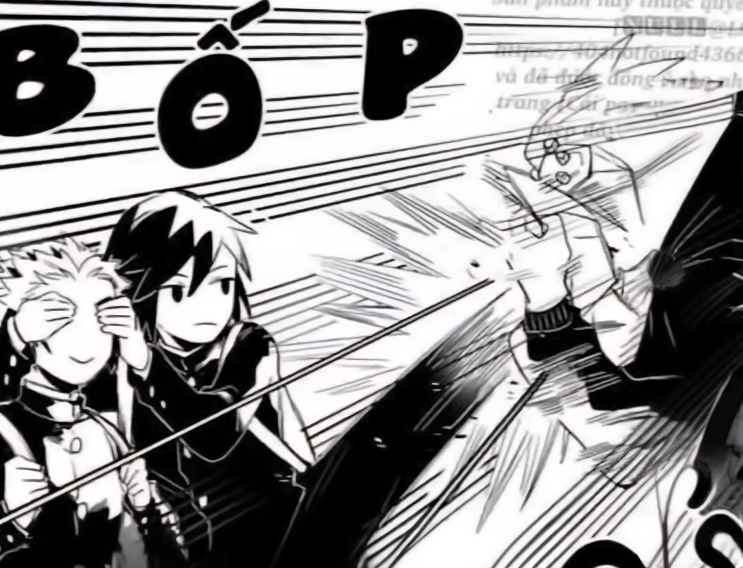 렌고쿠의 눈을 가리며 발로 만화책과우즈이의얼굴을차버림 퍽-