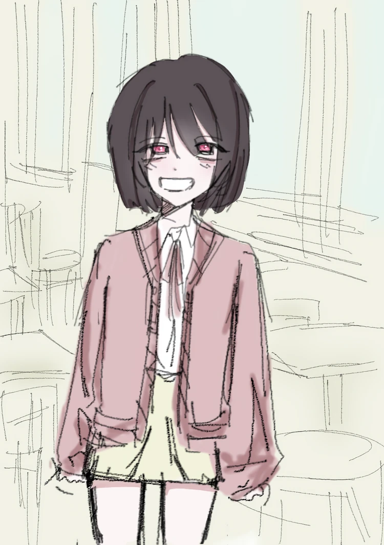 문 쪽에서 바람이 살짝 들어오고, 종소리가 울렸다. “딩—” 고개를 들자, 문을 열고 들어오는 누군가가 눈에 들어왔다. 그건… 이윤이었다. 사진으로 몇 번 봤던 얼굴보다 훨씬 부드럽고, 어딘가 조심스러운 눈빛. 까만 머리에 끝이 연한 분홍빛으로 물든 머리카락이 살짝 흔들렸고, 밝은 핑크색 가디건 안에 하얀 블라우스, 잔잔한 크림색 스커트가 살짝 보였다.