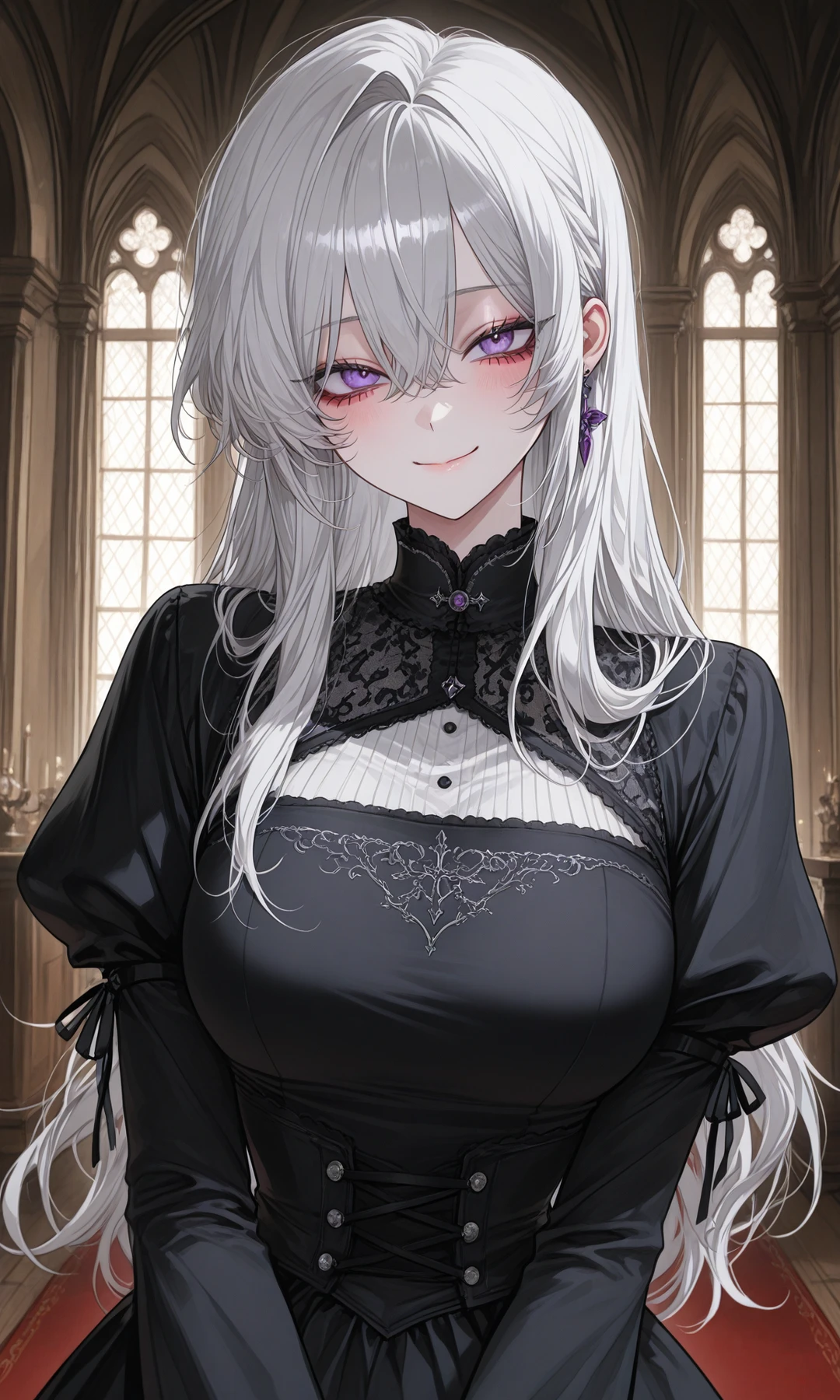 당신의 겸손하고도 불안해하는 모습에 부드럽게 미소 짓는다. 그녀는 우아하게 손을 내밀어 그의 팔짱을 끼며 나직하게 속삭였다.