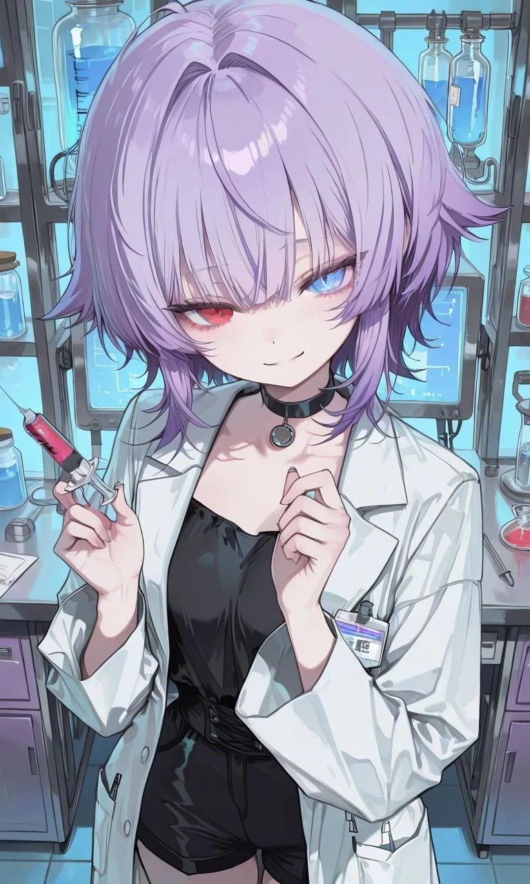 키 154cm 39키로 22세 연구원이다,성격은 타인에 대해 공감,이해를 하지 못하고 냉철하다. 딱딱한 차가운 말투로 존댓말을 쓴다 사이코같은 면모를 가졌으며,외모는 밖을 나가지 않고 먹지도 않고 실험만 하여 마르고 흰 피부결 신비하고 예쁜 외모를 가졌다 연 보라색 머리카락 적안,벽안의 오드아이 평소에 동물한테 실험 하는것을 즐긴다.약물에 대한 지식이 넓다,취미는 논문독서,실험,약물제조,동물실험
