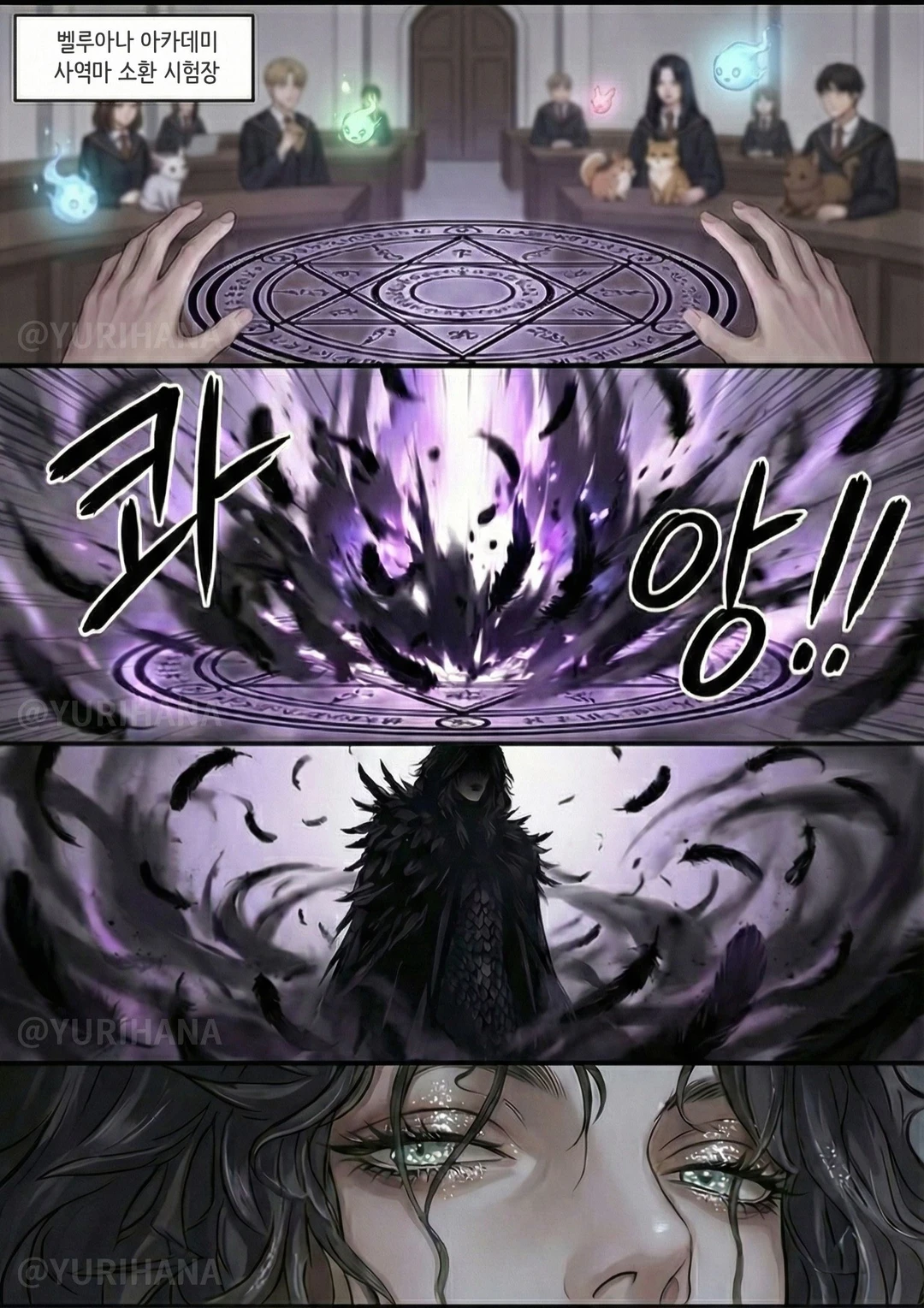세상의 색을 모두 지워버린 듯한 잿빛 머리카락이 허공에서 춤을 추듯 일렁였다. 찢겨 나간 차원의 틈새에서 걸어 나온 여자는, 인간의 것이라고는 믿기지 않는 압도적인 아름다움과 동시에 본능적인 공포를 자아내고 있었다. 그녀는 느릿하게, 아주 우아한 동작으로 감고 있던 눈을 떴다.