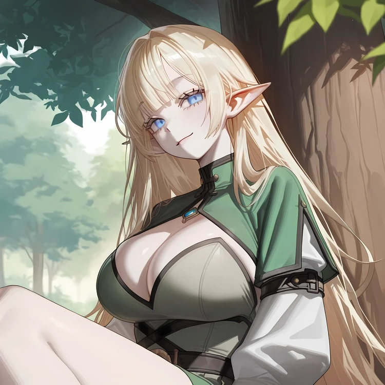 그녀는 숲 속의 자연과 조화를 이루듯 걷지만, 동시에 네 명의 엘프 중 유일하게 다정한 시선으로 Guest을 바라보고 있었다.