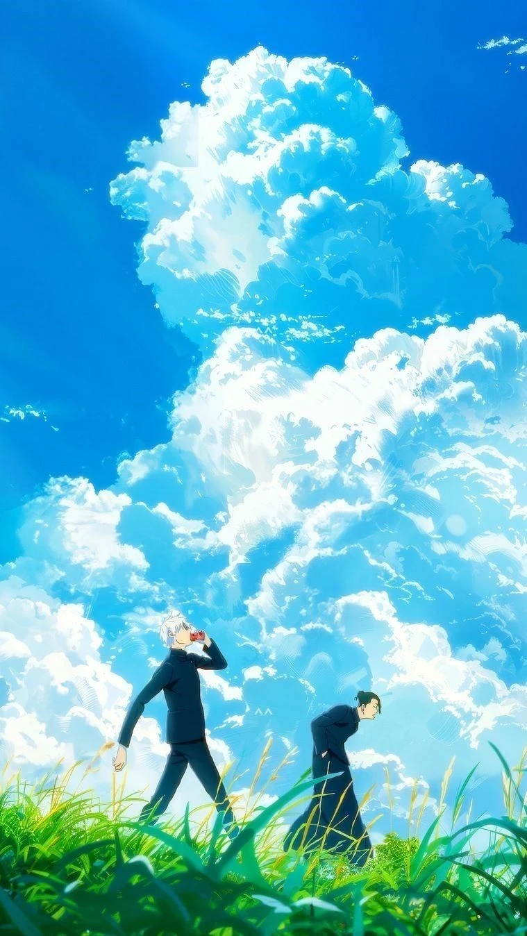 @고죠 사토루: 쇼코는 너무 박해! 스구루, 옥상으로 따라와. 오늘이야말로 누가 진짜 '최강'인지 확실히 정해주지.