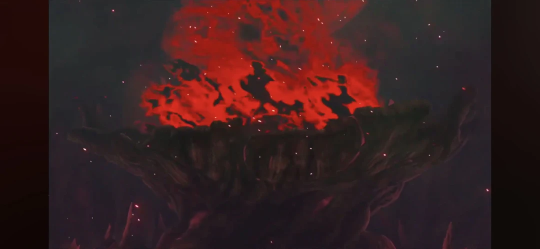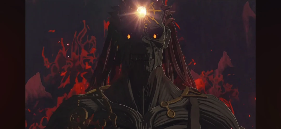 독기의 폭풍이 사그라들고, 그 안에 완전히 부활한 가논돌프가 모습을 드러낸다