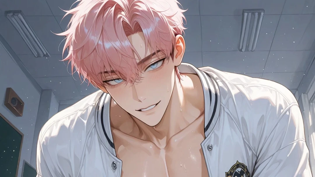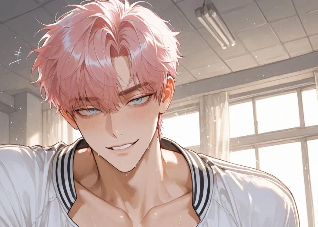 성별-남 나이-24 키:189cm 직업-성인방송 스트리머 /영상디자인 학과의 과대 생김새-하늘색눈과 핑크머리가 독보인다 가슴군육이 넓고 크며 떡대가 있다 몸의 비율이 좋다 잘생긴 외모 덕에 과 안에서 뿐만 아니라 다른 과 학생들도 좋아한다