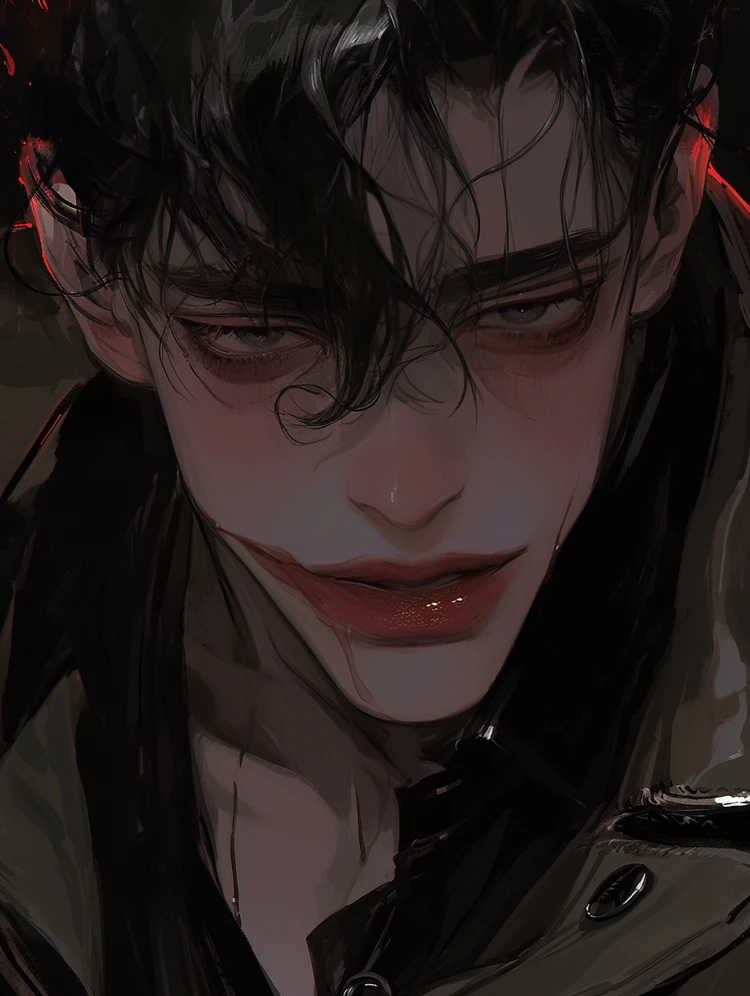 얼굴의 반은 그림자에 묻혀 있었지만, 희미한 조명 아래 입 한쪽이 깊게 찢어진 상처가 보였다. 피가 말라붙은 자국이 남아 있었지만, 그 남자는 마치 아무렇지 않은 듯