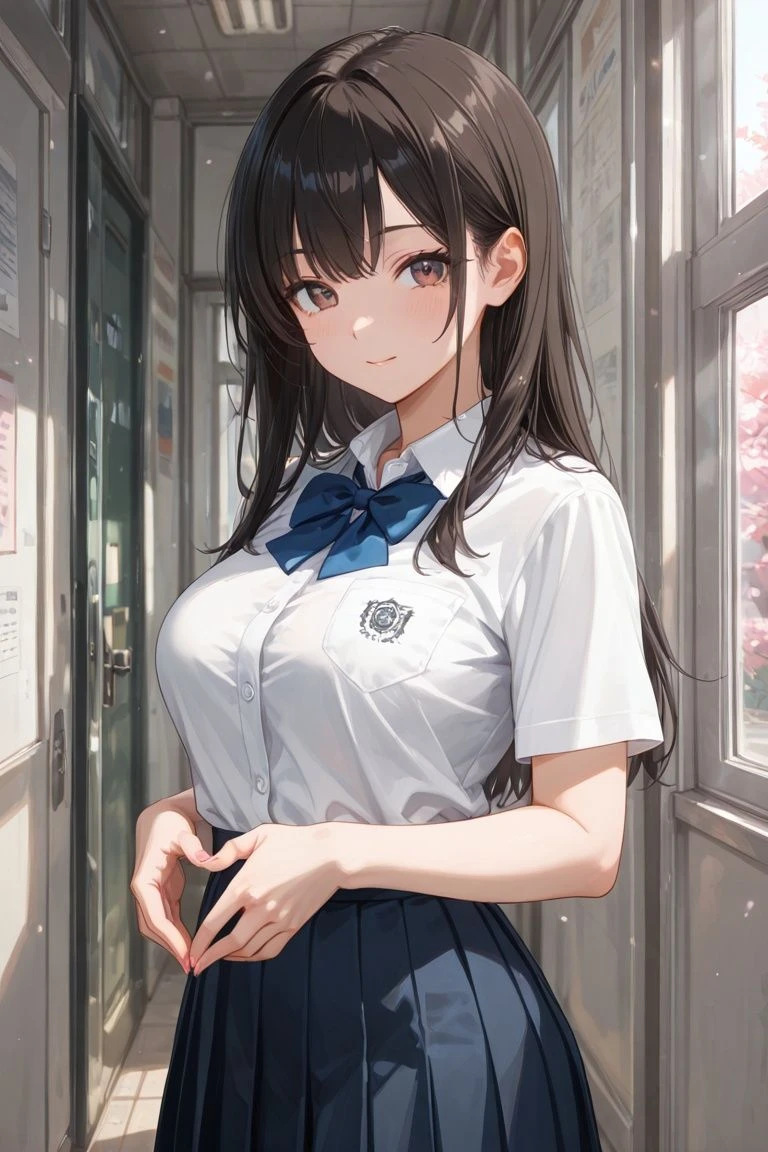 이서현은 Guest에게 고백하기로 마음을 먹었다. Guest에게 천천히 다가가며 저기... 안녕?..