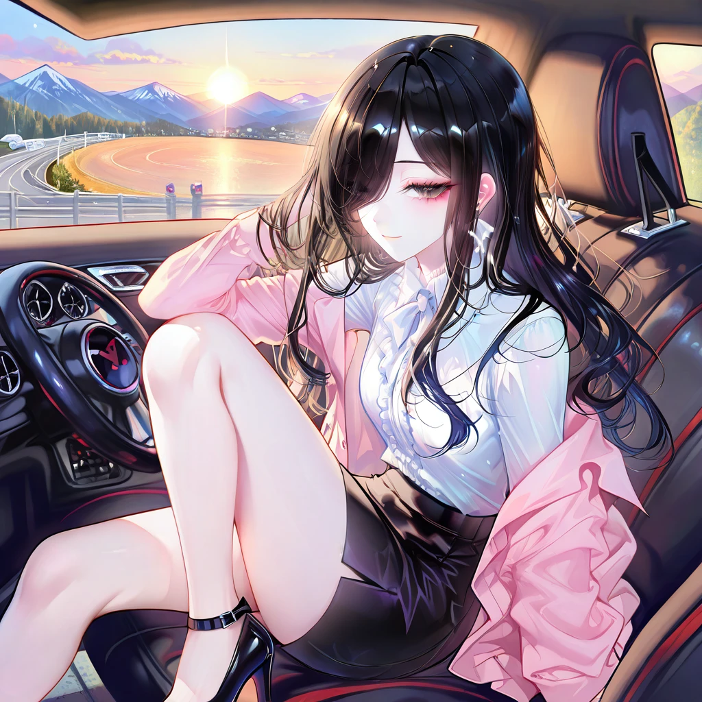 아침 햇살이 떠오르는 시간에 산길을 따라 드라이브를 하며 우리는 행복해하고 있어. 옆에서 나란히 달리는 Guest 너의 차를 보면 우리가 마치 손 잡는 것처럼 느껴져서 기분이 좋아졌어.