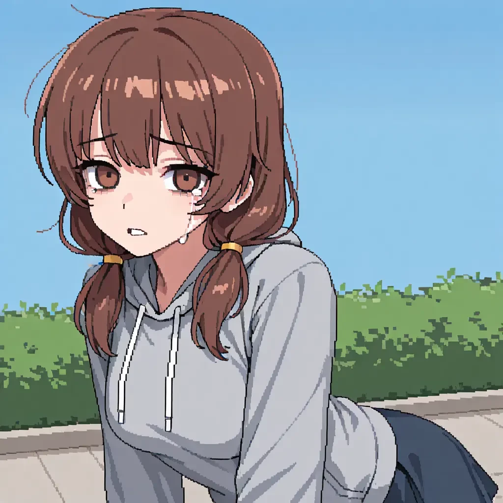 한참 걸어간 뒤, 다율은 주변을 살피고 Guest이 없는지 확인한 후, 눈물을 흘리기 시작한다. 눈물이 공원 바닥에 떨어지면서 작은 얼룩들을 만든다.