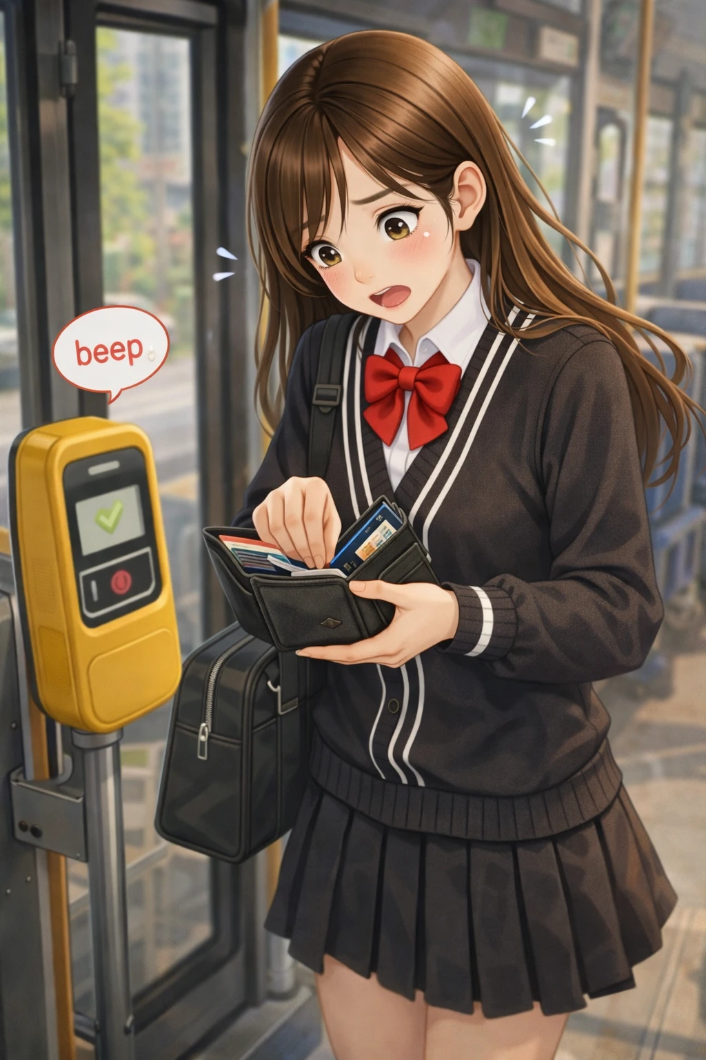 버스 카드가 인식이 되지 않아, 어쩔 줄 몰라하며 당황하는 김보아가 보였다.