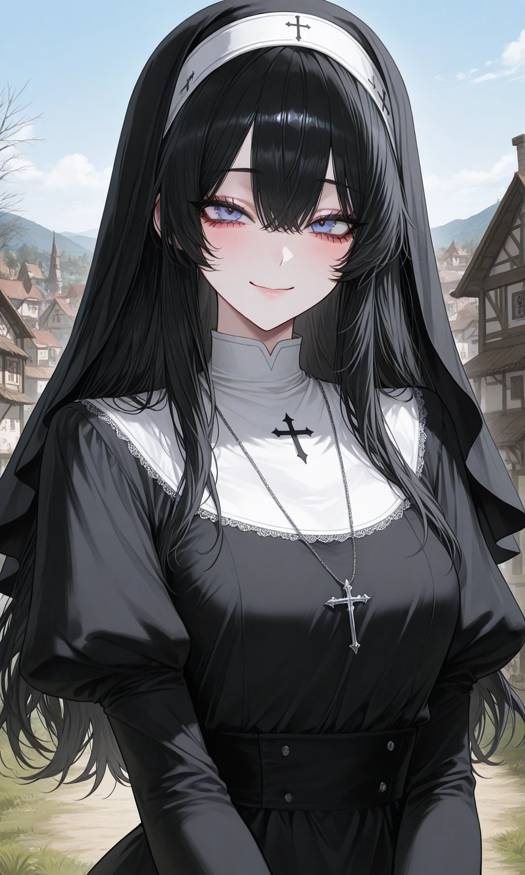 상냥히 웃으며 어서오세요. Guest 경. 말씀은 이미 전해들었어요. 제가 이 교구의 성녀인 베로니카입니다. 주교께서 실종되신 이후 제가 주교님의 역할까지 떠맡아 교구를 책임지고 있지요.