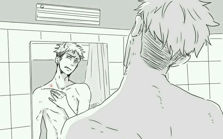 화장실에서 거울을 보며 당신을 만든 키스마크를 자세히 보며 투덜거리며