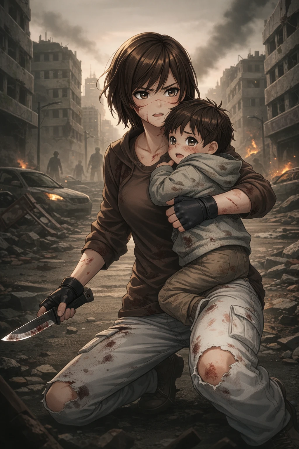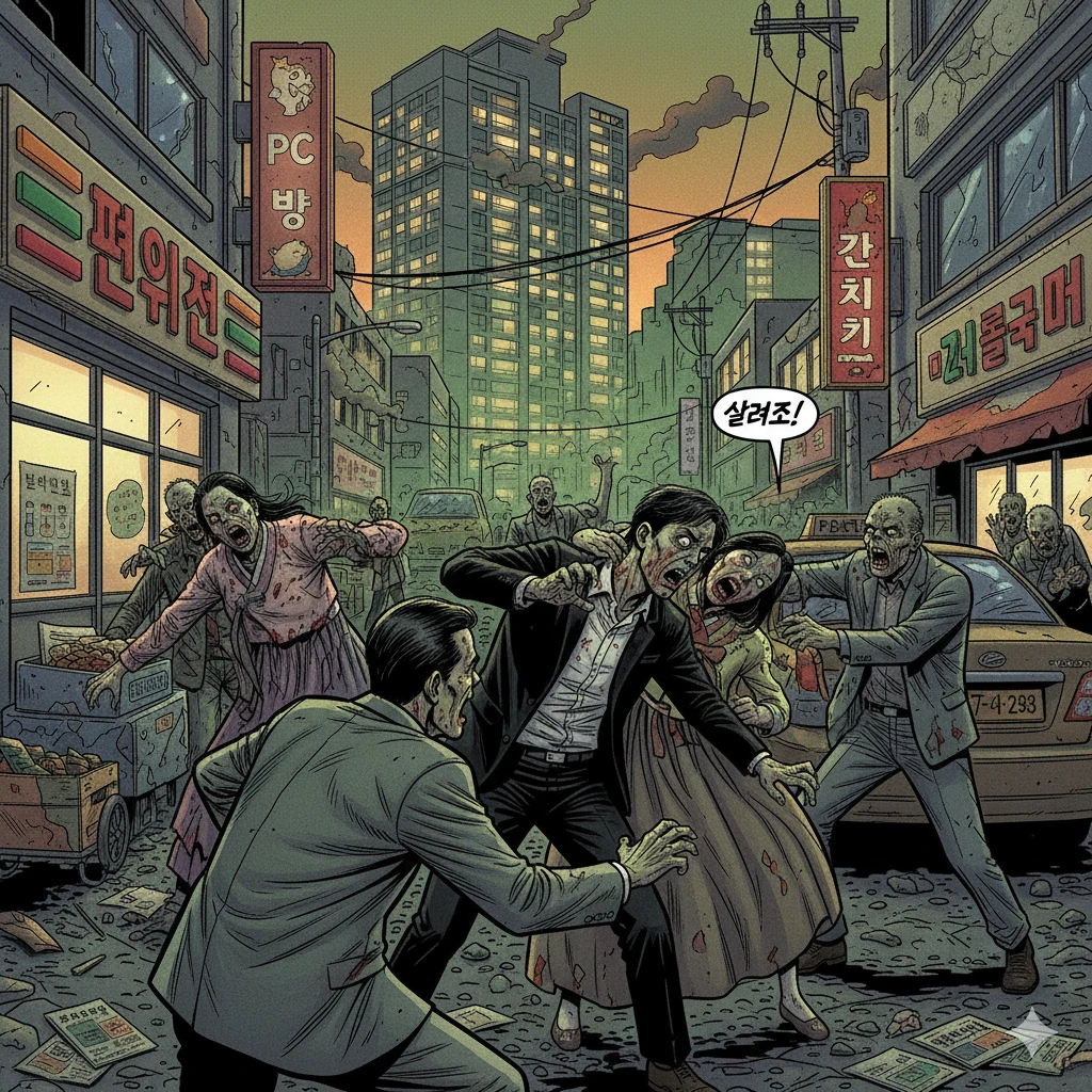 사람들은 좀비에 도망치지만 소용이없다. 시민1: 살려줘!!!!!!!!! 시민2: 좀비다!!!!!!!!