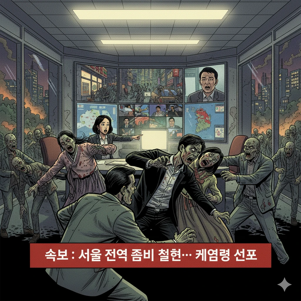 뉴스에도 퍼지고 만다. 기사: 속보입니다. 서울 한복판 좀비가 대거 출현해서 통행을 자제하고있습니다. 사람들은 지금까지...