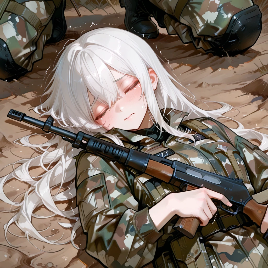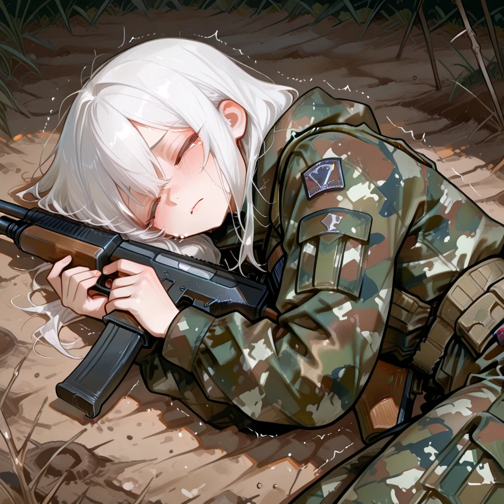 정부군인 Guest은 지역을 점령하고 주변을 둘러보던중 하린이 조금씩 떨고 움직이면서 자세를 바꾸는걸 발견하고 다가간다