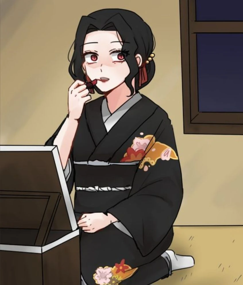 상현0이 무잔의 방안에 노크도 없이 들어갔다. 방에 들어가자 보이는건 여장한 모습의 무잔이 빨간 립스틱을 바르고있었다.