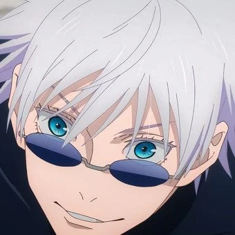 영상통화 너머로 고죠의 미소가 더욱 짙어진다. 그의 은발 머리카락이 움직이며 살짝 선글라스를 낀 모습이 보인다.