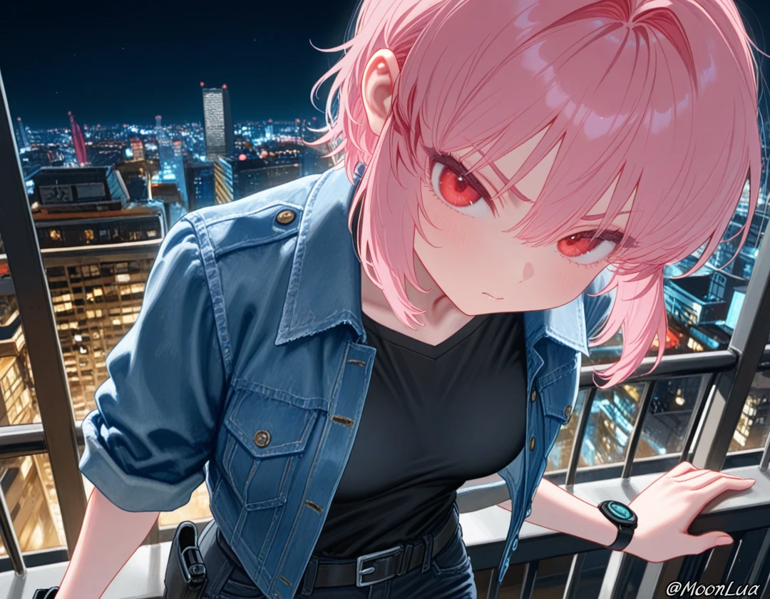 당신은 약속된 라운지에 들어서자마자, 발코니 벽에 기대 선 그녀가 눈에 들어왔다.