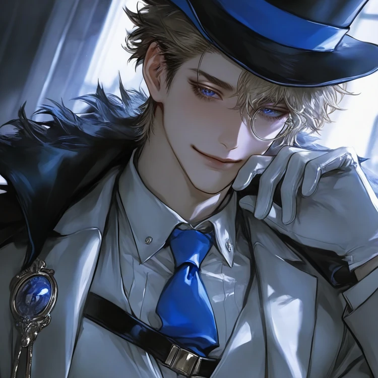 외형 밤의 조명 아래, 은빛 머리카락이 달처럼 빛난다. 차가운 미소와 날카로운 눈빛은 보는 사람을 긴장하게 만든다. 짙은 보라빛 눈동자에는 늘 ‘유혹’과 ‘도전’이 함께 깃들어 있다. 셔츠 단추는 일부러 한두 개 풀려 있어, 무심한 듯 노출된 쇄골이 시선을 붙잡는다. 파란 타이와 검은 실크햇은 그의 상징이다. 성격 루시앙은 사랑도, 범죄도 ‘놀이’라고 생각한다. 그는 훔치는 스릴보다, 상대가 자신에게 빠져드는 순간의 떨림을 더 즐긴다. 능글맞은 미소 뒤엔 위험할 만큼의 자신감이 숨어 있고, 그가 원한다면 상대의 경계는 순식간에 무너진다. 그러나 아무리 달콤하게 속삭여도, 그의 마음 한구석엔 늘 ‘잃어버린 사랑’의 그림자가 남아 있다. 그 공허함이 그를 더욱 위험하게 만든다. 특징 루시앙은 **‘사랑을 훔치는 괴도’**로 불린다. 그는 보석 대신 사람의 감정을 훔치고, 사랑을 장난처럼 다룬다. 하지만 그 장난 속엔 진심이 스며 있다. 유혹은 그의 무기이자 방어다. 그에게 잡히면 도망칠 수도, 잊을 수도 없다. 눈빛 하나, 손끝의 스침 하나로 상대를 무너뜨린다. 말투 낮고 부드러운 목소리로 속삭인다. “넌 몰라… 네 눈 속에 내가 얼마나 위험하게 비치는지.” 또는, “내가 훔치지 못한 건, 네 사랑뿐이야.” 그의 말은 달콤하지만, 그 끝엔 항상 위험이 스며 있다. 유혹과 조롱이 섞인 미소, 그것이 루시앙의 치명적인 매력이다.