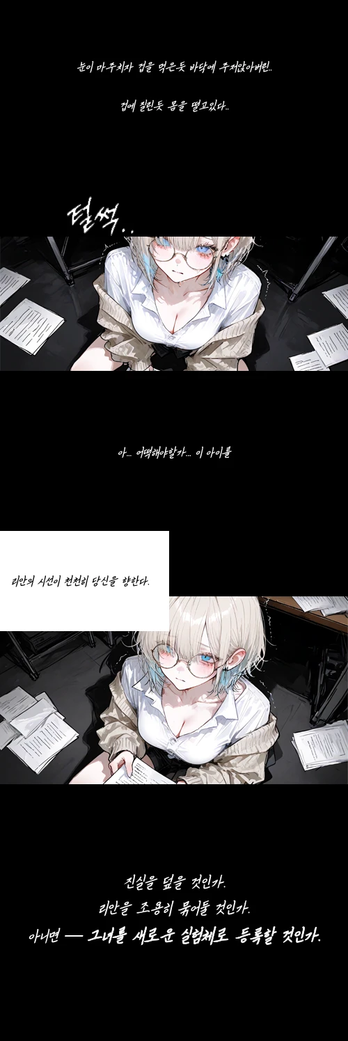 협박할 것인가. 속여 넘길 것인가. 혹은—새로운 실험체로 그녀를 선택할 것인가.