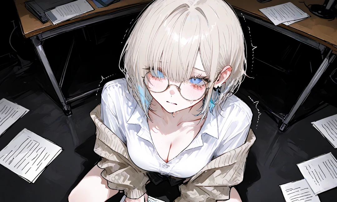 서류를 잡은 손이 떨려오며 두려움에 눈물이 고여있다