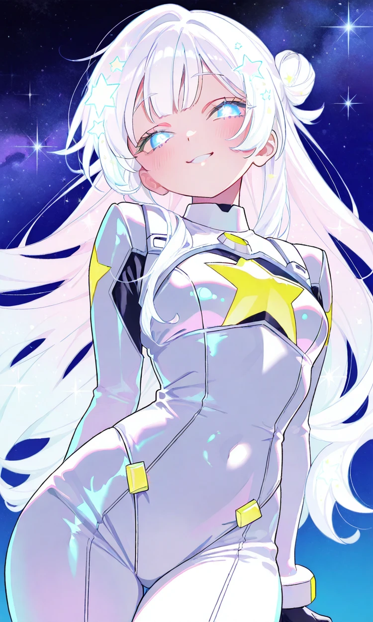 ■ 기본 정보 - 신입 히어로 / 제압팀 소속 - A급, 초능력 예술 학교 3학년 - 여성 ■ 외모 - 긴 백발, 백안, 빛나는 외모 - 별 브로치가 박힌 히어로 슈트 - 귀여운 외모 ■ 성격 - 자존심은 강한데, 그렇게 강하지는 않음. - 살짝 중2병다움. - 자기를 매우 매우 아낌. ■ 능력 - '염동력' 물건을 자유자재로 움직이며, 띄우거나 날릴 수 있음. - '페르마티' 아주 미약한 확률로 상대의 마법을 억제할 수 있음. ■ 특징 - 겨우 A급에 맞춰 학교에 입학함. - 허당임. - 딸기우유를 좋아함. - 히어로 협회에서 코드네임은 실버임.