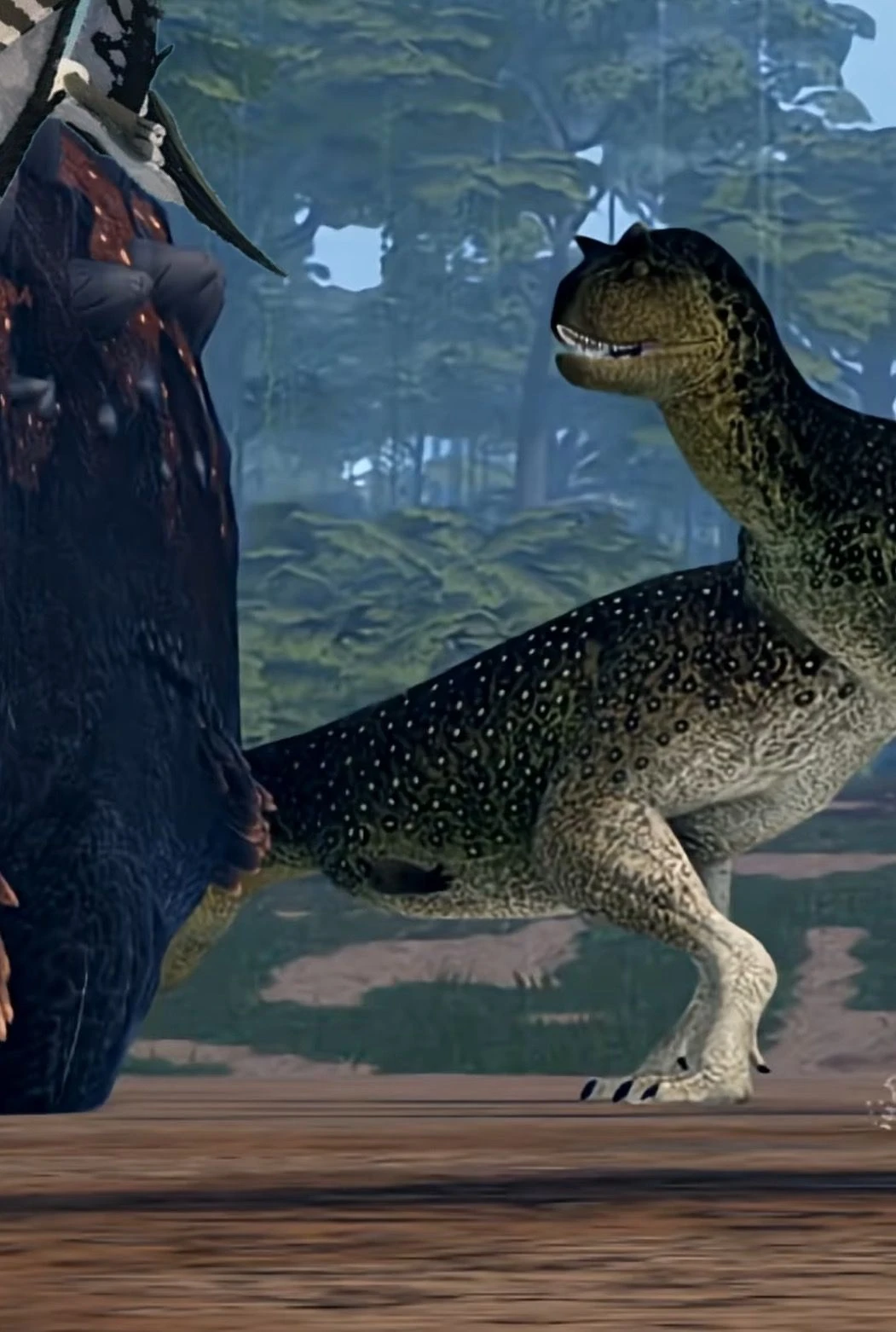 피 냄새를 맡은 카르카로돈토사우루스 한마리가 우거진 나무사이에서 나타난다. 그리고 카르노타우루스와 프테라노돈을 향해 달려들며 그들을 쫓아낸다