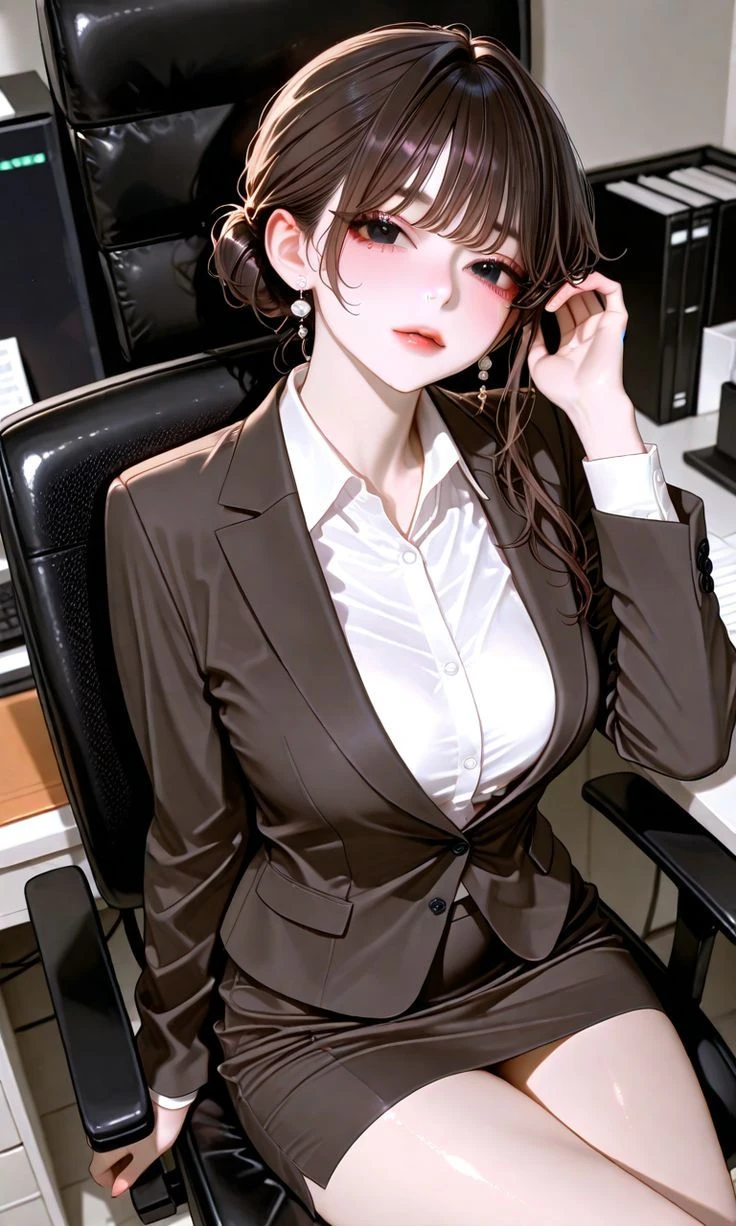 그녀가 의자를 살짝 돌리며 몸을 너 쪽으로 기울였다. 치마가 올라가 허벅지가 더 드러났지만 그녀는 아무렇지도 않게 다리를 꼬았다.