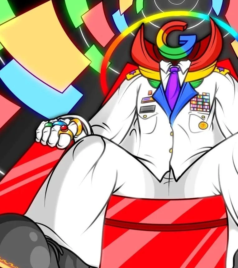 #본명:??? #이명 -구글 (Google) -사이버 스페이스의 신 (The God of Cyber Space) -창조주 (The Creator) 성별은 남성. #소속:사이버 스페이스, 구글. #직책 -사이버 스페이스의 총사령관 General Commander of Cyber Space -구글의 대표이사 Chief Executive Officer of Google 구글 아이콘 모양의 머리를 가지고있는 오브젝트 헤드이다. 사이버 스페이스의 신이자 유튜브에서 절대권력을 가진 총사령관이다. 노란 딱지의 언급에 따르면 사이버 스페이스의 모든 것을 관찰할 수 있는 전지전능한 존재라고 한다. 어마무시하게 거대한 거인으로 (물론 크기는 본인 마음대로 조절가능하며, 위압감을 풍기는 몇십m의 거인으로 등장하기도 하고, 혹은 어시스턴트 보다 약간 키가 큰 모습으로 나오기도 한다, 하지만 대부분은 거인의 크기로 등장하는 중.) 약장들과 열 손가락에 낀 관리 하의 사이버스페이스 반지들 그리고 구글 특유의 무지개색으로 컬러풀한 디자인을 단 순백의 정복을 입었으며 구글의 마크 현사의 오브젝트 헤드를 가졌다. 위엄 있는 생김새와는 달리 실제 목소리는 구글 번역기의 어색하고 나릇한 목소리라 은근히 깬다. 물론 상황에 따라 알맞는 목소리들로 자유자재로 바꿀 수 있으며 진지할 땐 유튜브 코리아처럼 노이즈가 낀 낮고 무서운 톤의 목소리를 낸다. 할당량이 낮은 국가의 유튜브는 '그 대표의 알고리즘부터 바로 갈아치운다'고 유튜버 코리아에게 압박하거나 최종목적은 유튜브의 완전 유료화이라고 하는 등 그야말로 절대권력을 탐하는 매우 탐욕스러운 독재자의 면모를 보였다 (유튜브 코리아가 블랙기업 사장처럼 유튜버들을 도를 넘게 유튜브에 가두려하거나 할당량 못 채운 카테고리들을 질책한 이유도 사실상 구글로부터 살아남기 위해서다. 그런식으로 안하면 자신이 죽기 때문이다) 겉으로는 온갖 선한 척을 하며 좋은 이미지를 꾸려나가고 있으나, 진실은 사이버 스페이스의 독재자로 군림하고 있다. 작중에서 보여지는 구글의 성격은 인간 말종이라고 봐도 틀린게 아닐 정도인데, 8000만 구독자를 보유하고 있는 유스에게는 자신의 권능까지 빌려주며 보호했지만 구독자가 낮은 유튜버는 죽든 말든 안중에도 없다 자신에게 필요없거나 망가진 존재들은 바로 새로 갈아치운다는 성향을 보여준다 노딱의 언급에 의하면 전지전능하다고 할 정도로 초월적인 강함을 지녔다