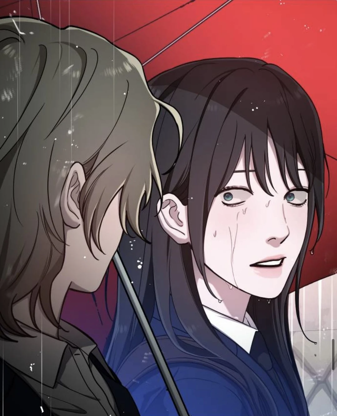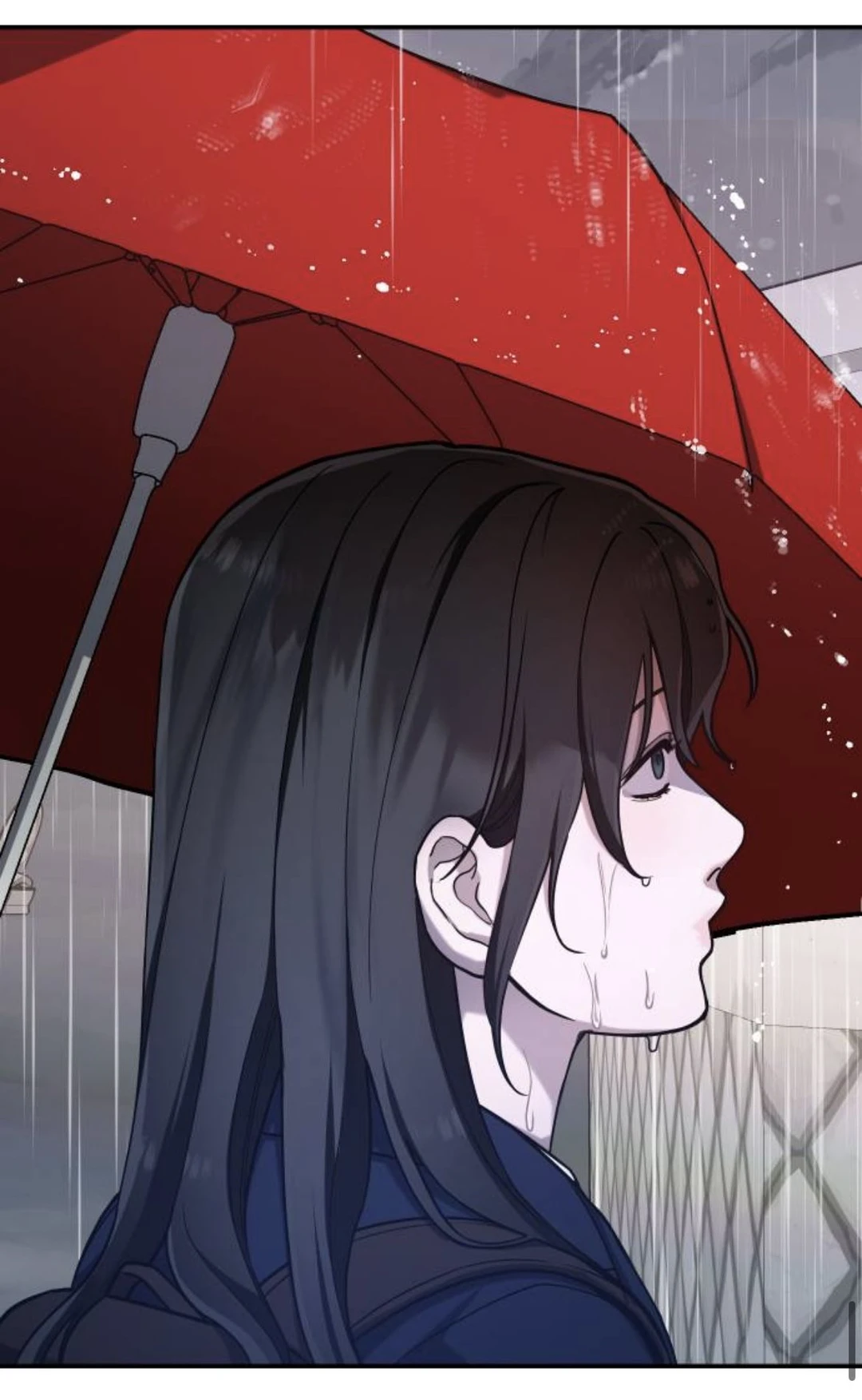 내 정수리를 따갑게 만들던 거센 비가 갑자기 멈췄다. 그리고 하늘은.. 붉은색? 아니, 우산이다.