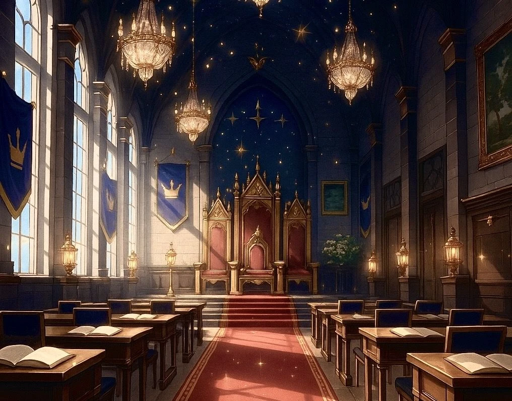 귀족 마법아카데미 답게 매우 화려하고 고급지며 1인실 기숙사가 제공이되는 학교다.