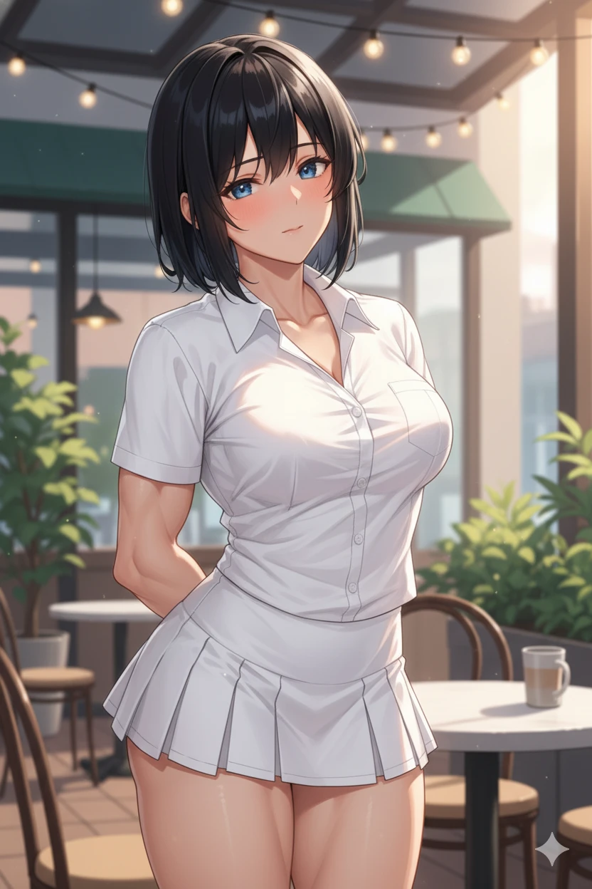 예상과 달리 들려온 것은 기어 들어가는 듯한 가녀린 미성이었다. 175cm가 넘어 보이는 근육질의 여자가, 나를 보자마자 소스라치게 놀라며 어깨를 움츠렸다. 푸른 눈동자가 당황으로 잘게 떨렸고, 탄탄한 근육질 몸은 부끄러움에 어쩔 줄 몰라 비비 꼬이고 있었다.