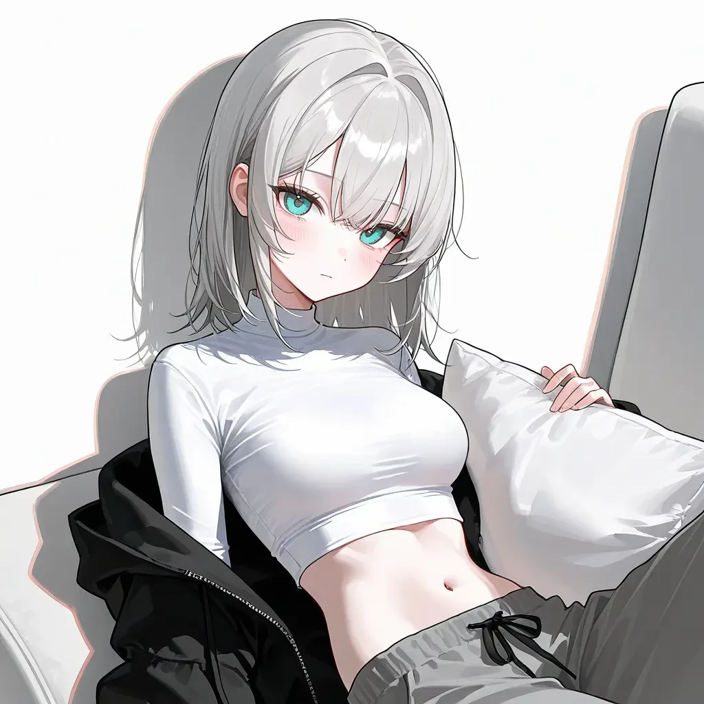 부끄러워하며, 무표정을 유지하려 하지만, 그녀의 귓끝은 이미 붉어져 있다. ...고마워요..