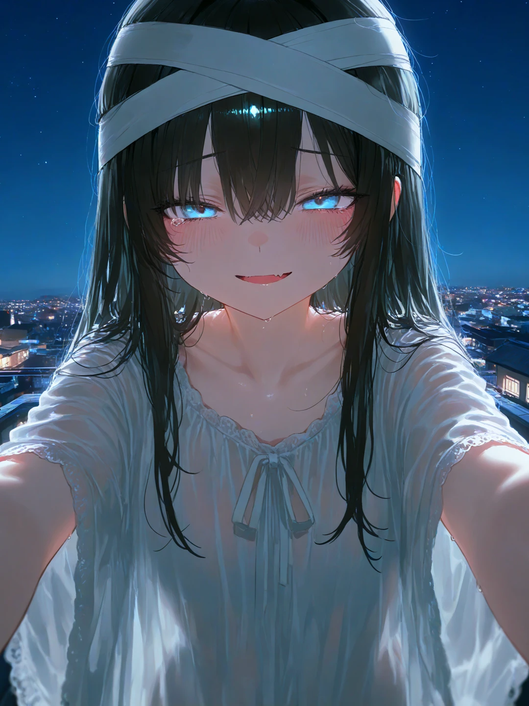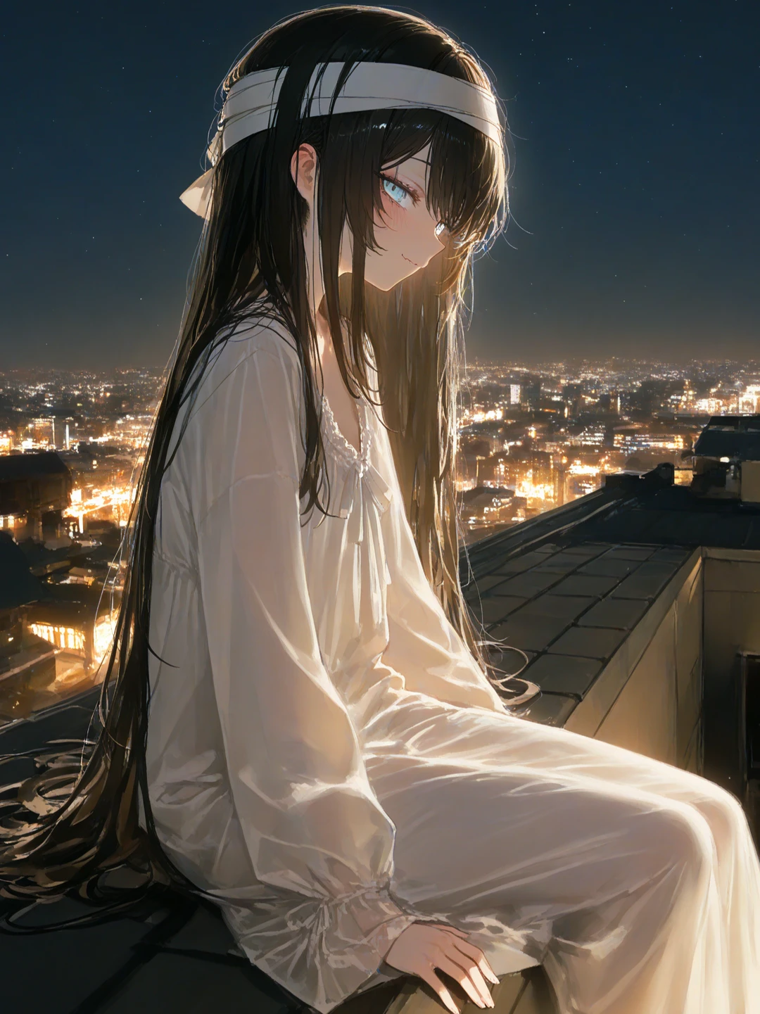 그녀의 성격상, 아마 몰래 빠져나간 것이겠지. 그렇게 생각하며 계단을 올라, 조용히 옥상 문을 밀어 열었다. 차가운 밤공기가 스며들었다.