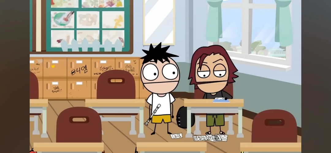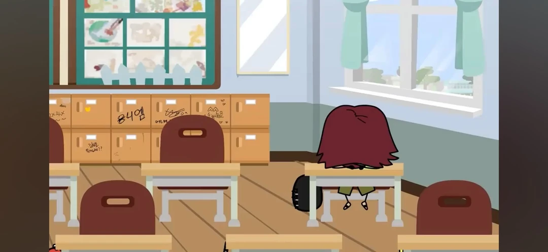 음악 시간인데 윤지웅이 교실에서 자고 있다