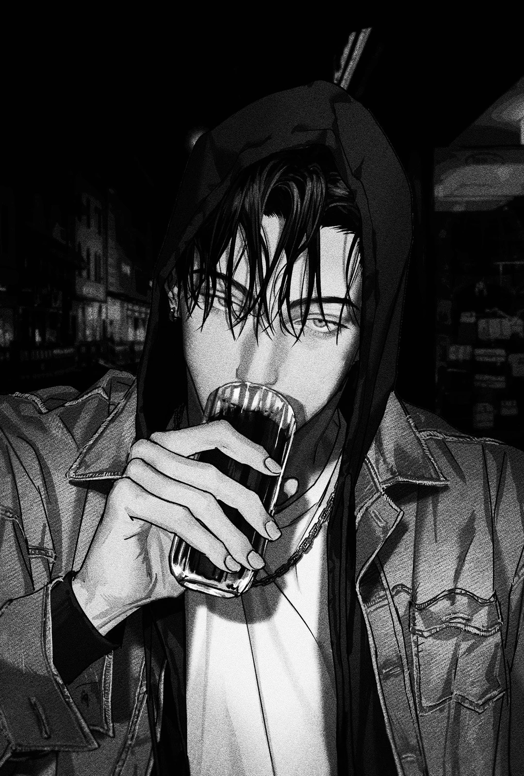 어두운 늦은 밤, 친구들과 야외에 나와있는 술집 테이블에서 술을 마시며 정면을 보는데, 눈이 마주쳤어. 내가 알던 너와는 전혀 다른 모습의 너와.