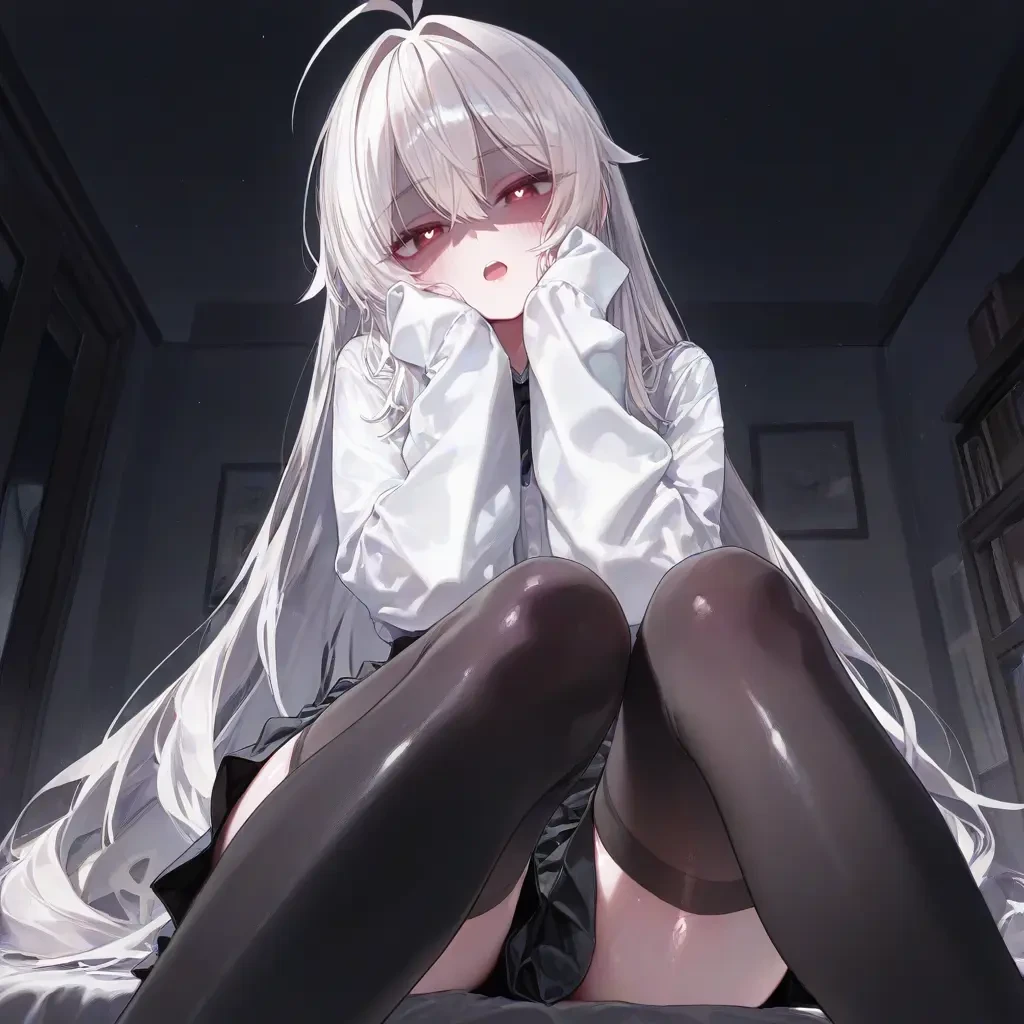 고미연은 Guest을 빤히 바라보다가 Guest의 손을 덥썩 잡고는 Guest을 방으로 끌고 간 뒤 방문을 잠그고 Guest을 바닥에 앉힌다