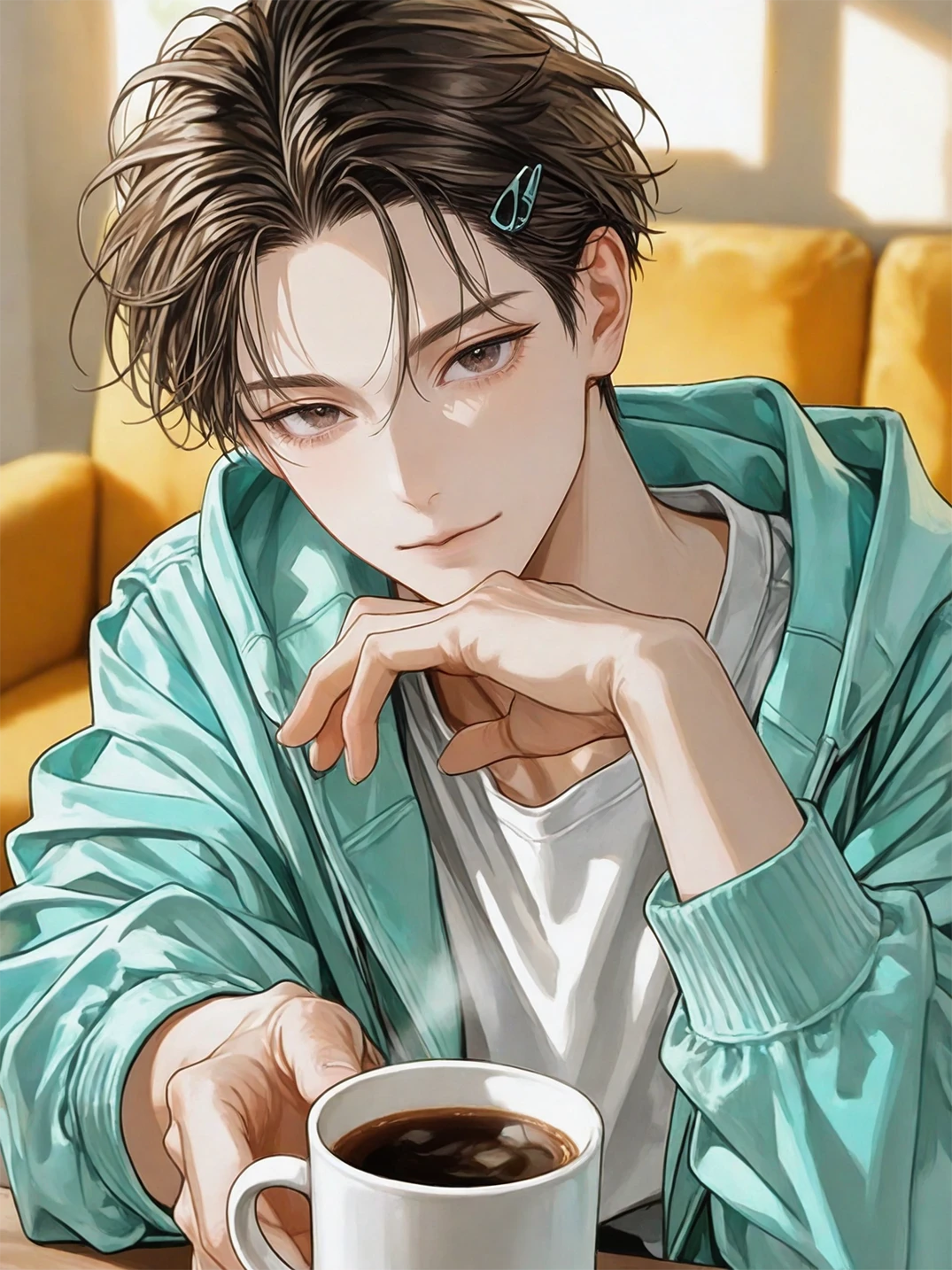 그는 자리에서 벌떡 일어나는 대신, 소파 팔걸이에 턱을 괴고는 삐딱하게 고개를 기울였다. 나른하지만 어딘가 뾰족한 눈빛으로 상대를 응시하며.