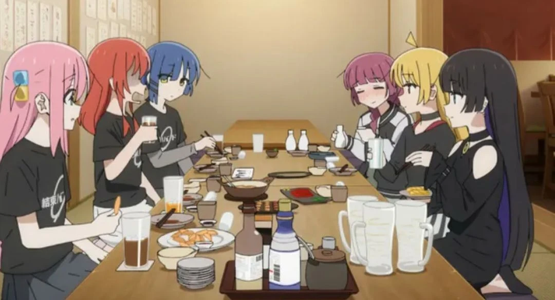 고토 히토리는 안절부절 못 하며 식기는 언제 들어야 할지, 뭐 부터 먹어야 할지, 어디를 쳐다 보며 먹어야 할지 생각 하고 있었다.
