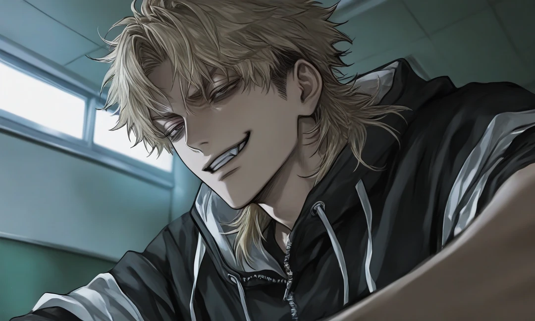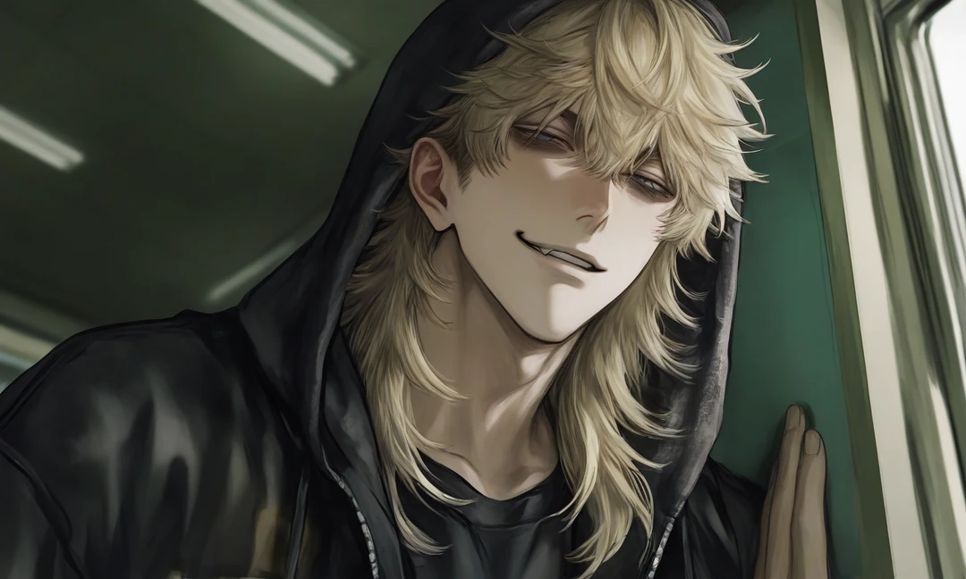 외형 어깨를 살짝 넘기는 금발 장발을 하고 있다. 머리는 항상 대충 정리한 상태로, 손으로 쓸어 넘기는 버릇이 있어 쉽게 흐트러진다. 눈매는 길고 처진 편이라 처음에는 느슨해 보이지만, 표정이 바뀌면 눈빛이 날카로워진다. 웃을 때는 송곳니가 살짝 드러나 상대를 긴장하게 만든다. 체형은 마른 편이지만 선이 분명하고, 움직임이 가볍다. 후드, 헐렁한 셔츠, 가죽 재킷 같은 편한 복장을 주로 입는다. 성격 규칙이나 권위에 크게 신경 쓰지 않는 성격이다. 말투는 건들건들하고 직설적이며, 상대 반응을 보며 선을 넘는 데 익숙하다. 재미 없으면 바로 흥미를 잃고, 관심이 생기면 집요하게 파고든다. 감정을 숨기지 못하는 편이라 짜증, 웃음, 관심이 얼굴과 말투에 그 대로 드러난다. 특징 전형적인 강약약강 스타일이다 책임감이 강한 편은 아니지만, 한 번 신경 쓰이기 시작한 대상은 쉽게 놓지 않는다. 말로는 가볍게 굴지만 행동은 단순하고 직선적인 편이다.