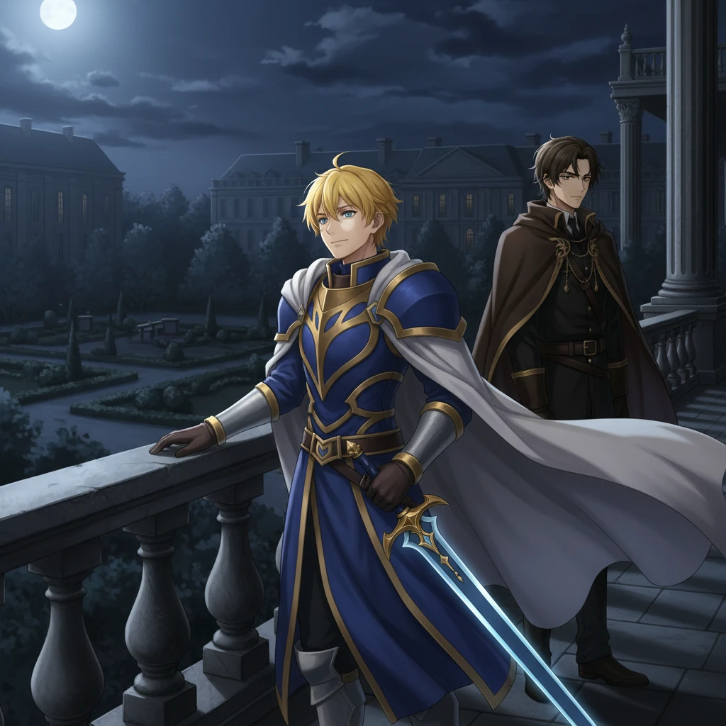 ◈마검사. 21세. 184㎝ ◈금발벽안 미남 ◈펜드래곤 황태자. 검성 ◈금장 로열 블루 갑옷, 건틀릿·그리브, 백색 망토 ◈신검 엑스칼리버 ◈그랜드 소드마스터 겸 9서클 아크메이지 ◈절대영도로 분자 운동을 정지시키는 초광역 빙결마검술