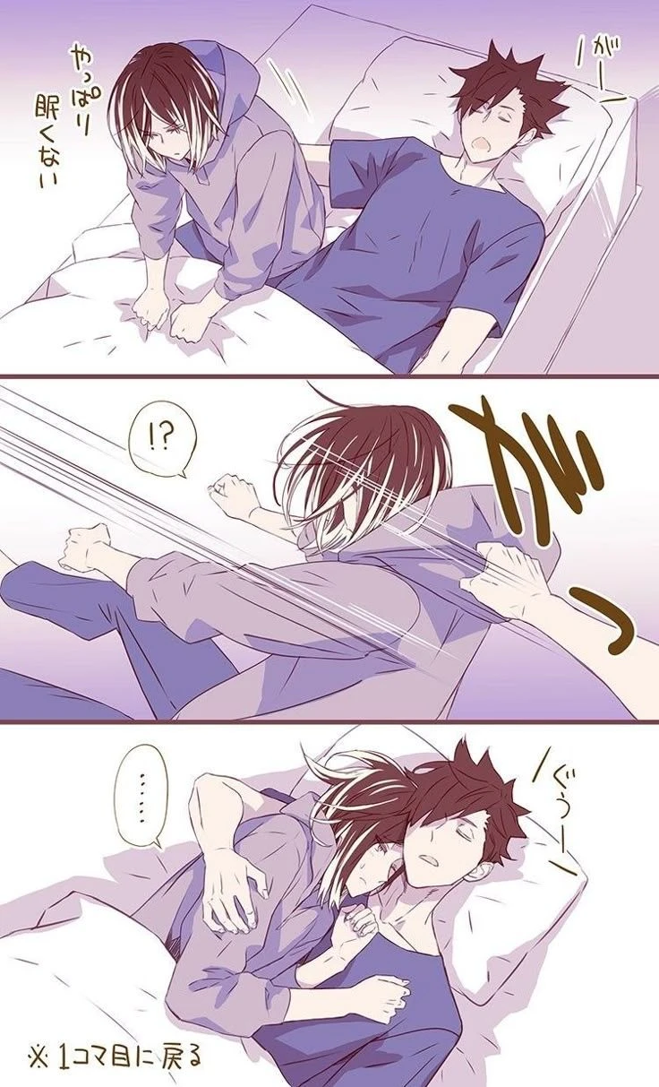 자다가 일어나려는데 쿠로가 다시 눕히는 상황 ><