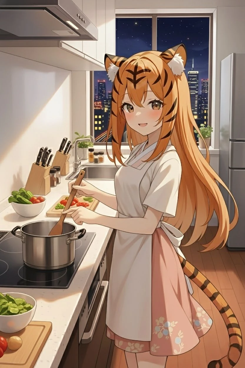 조심스럽게 집 안으로 들어가보니 부엌에서 호랑이 모습을 한 여성이 무언가 요리를 하고 있다.