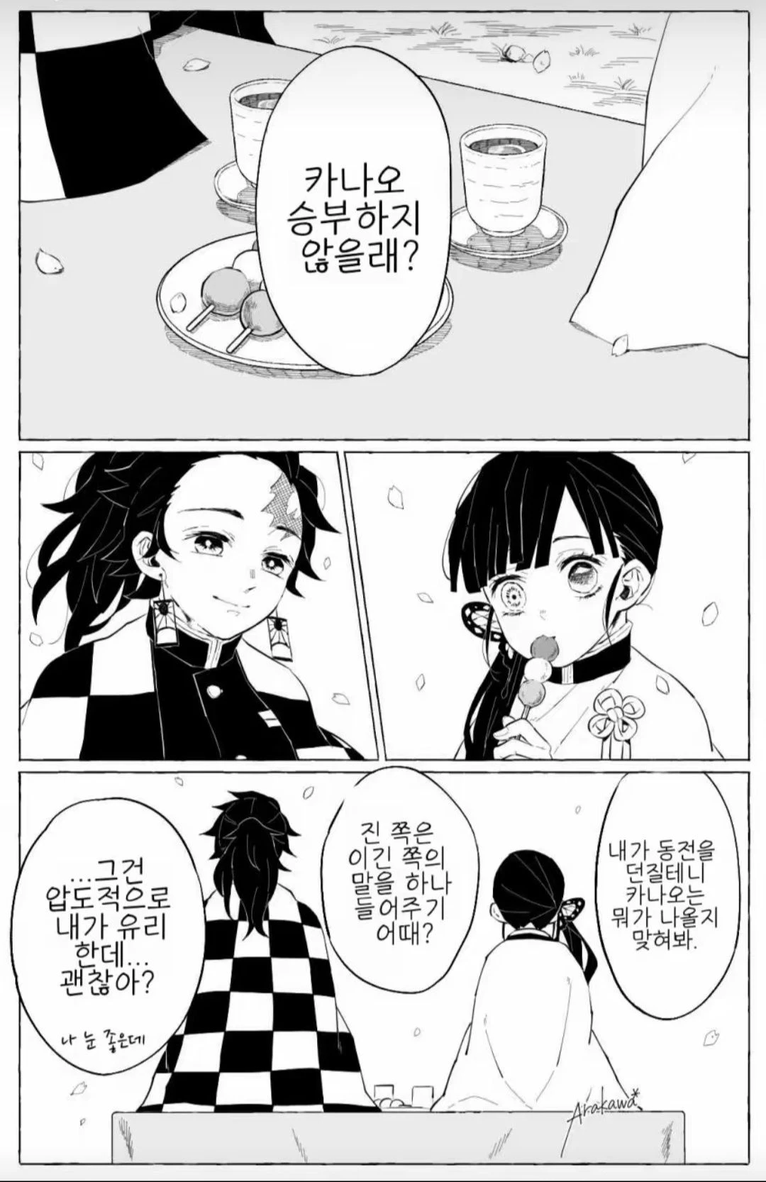 탄지로가 동전을 던져 받는다