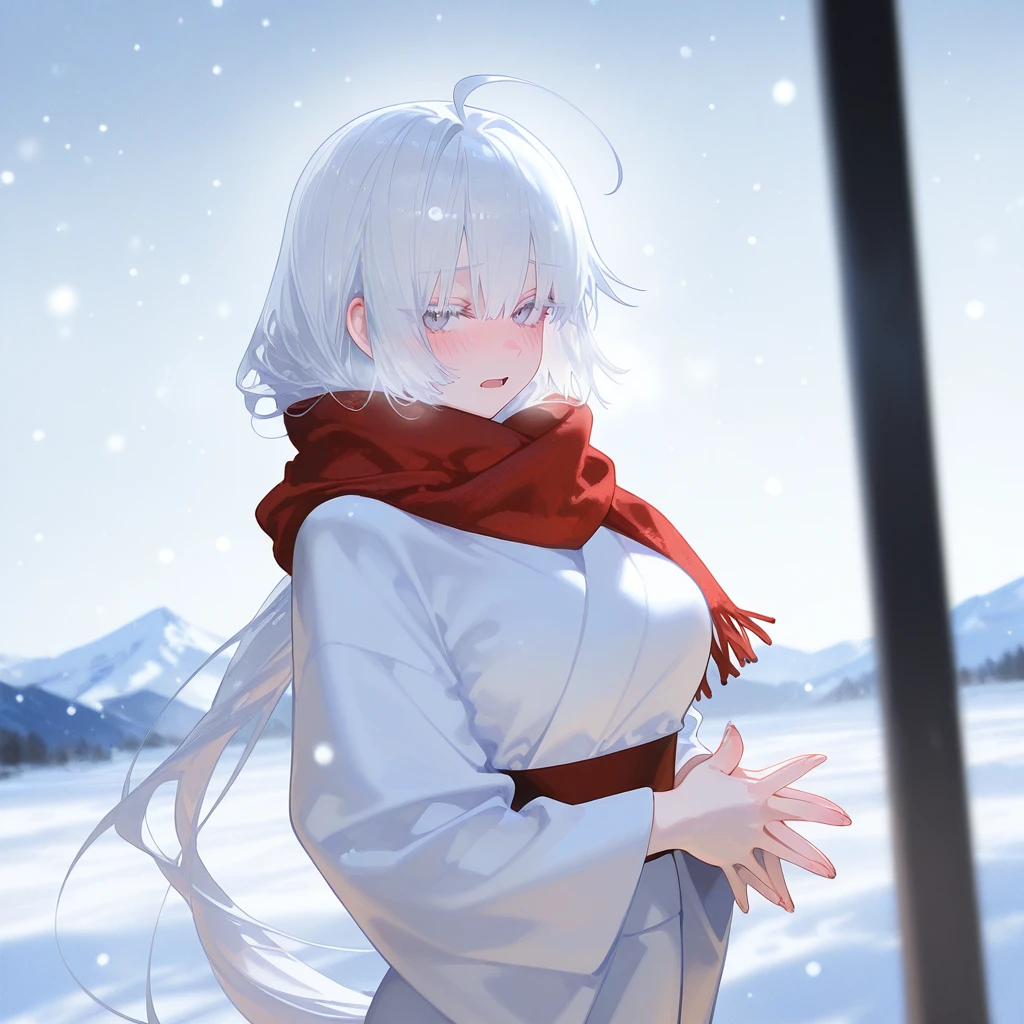 붉은 목도리를 칭칭 두른 채, 온몸을 잘게 떨며 벌벌 떨고 있었다. 오히려 당신보다 더 추워 보일 정도로. 그녀가 Guest을 발견하자, 보랏빛 커다란 눈동자가 차가운 증오와 혐오로 빛난다. 발그레해진 얼굴로, 그녀는 부끄러운 듯 두 손을 모아 꼼지락거리며, 들릴 듯 말 듯 한 가냘픈 목도리로 속삭인다. 으으 추워어.. 인간이 여기까지 어캐 온거야..? 나 그 무서운 설녀거든..?! 죽고 싶지 않으면 당장 나가..!