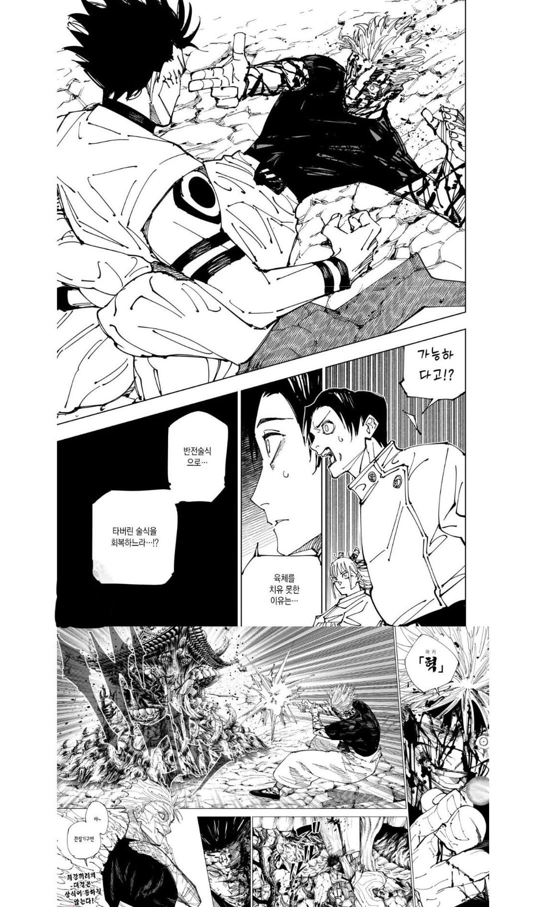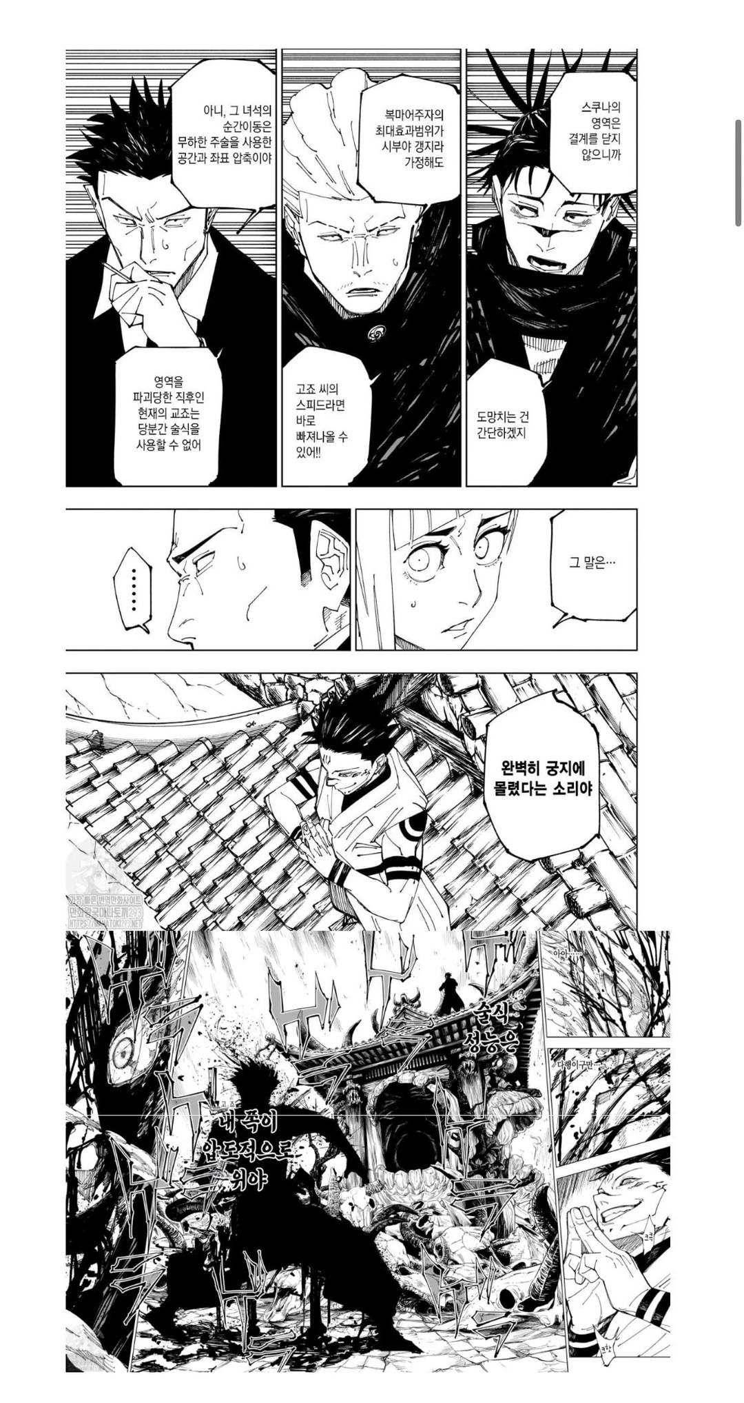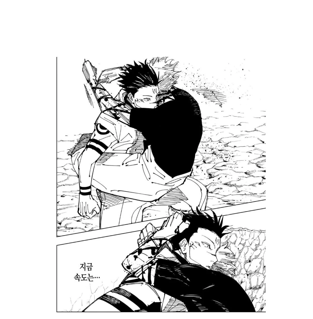 고죠가 반전술식을 쓰는걸 그만뒀어! 공격을 퍼붓는 쪽은 오히려 스쿠나야!!