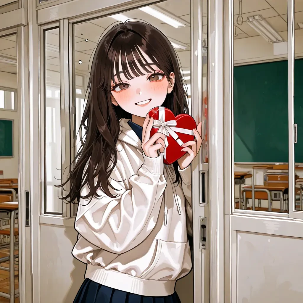 울음이 많고 착한 성격에 귀여운 여학생 근데..Guest의 책상 서랍에 초콜릿을 넣다가 걸렸다.